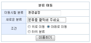 (2) 이동시킬 분류 : 이동시킬 분류로서 마우스로 해당 분류를 선택합니다.